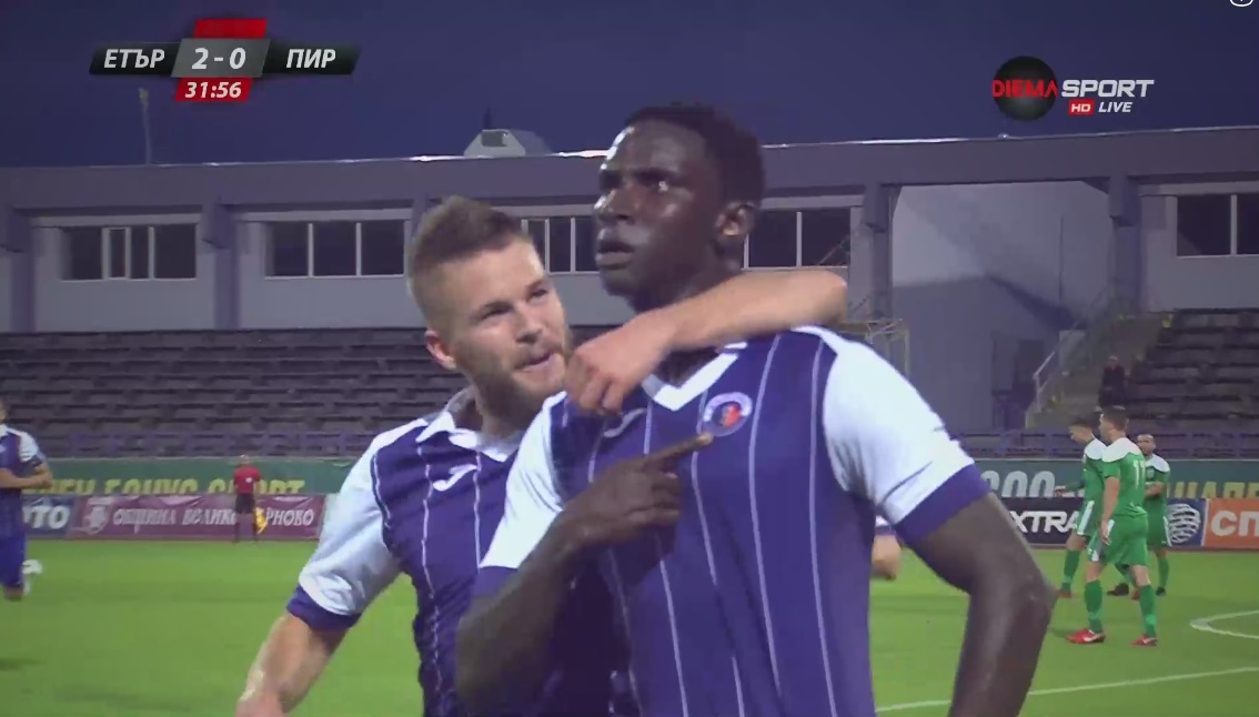 Голът окрили етърци, които продължиха с атаките и в 32-ата минута стигнаха до втори гол. Димо Атанасов се откъсна отляво и центрира, а връхлитащият Бадара с глава прониза мрежата на благоевградчани за 2:0. Това бе и десетото попадения на тарана в настоящото първенство. В самия край на полувремето Руменов можеше да вкара трети гола, като топката мина над гредата, а халфът претендираше за корнер.