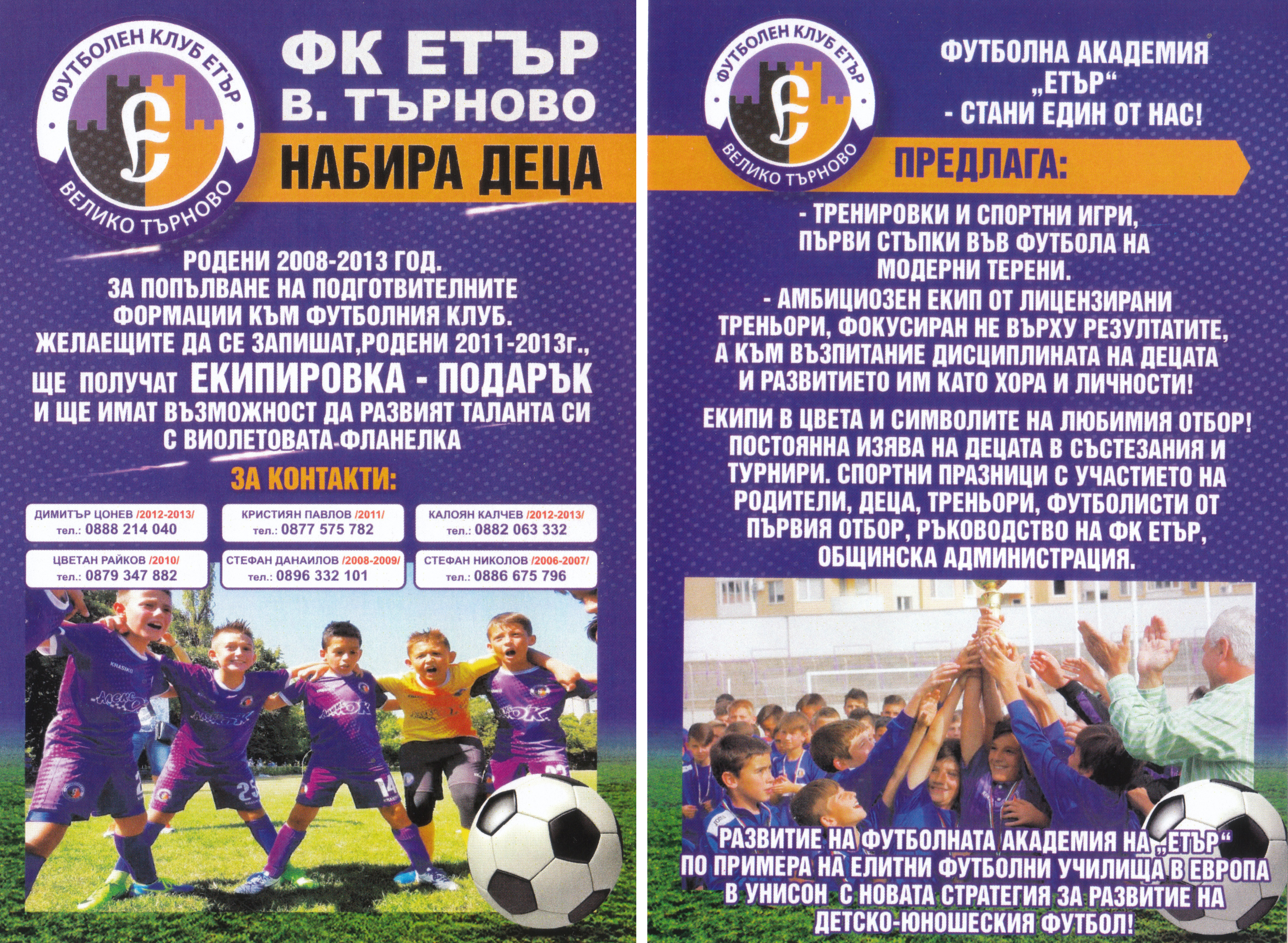 „Етър” разширява дейността си, събира деца, набор 2006, 2007 и 2008 от всички училища