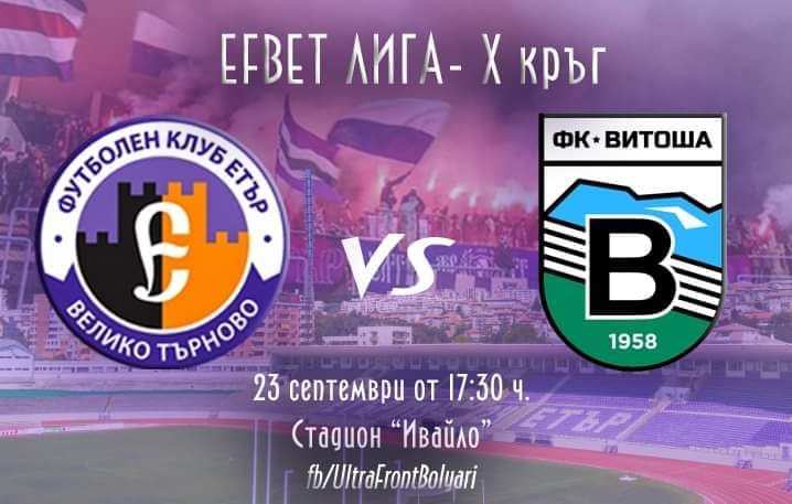Билетите за мача “Етър” – “Витоша” (Бистрица) ще бъдат пуснати в продажба от понеделник в 10:00 ч. на касата пред Спортния диспансер. От 16 ч. ще отвори и втората каса пред стадиона, а от 16:30 ч. отварят и входовете за самия мач. Паркингът пред стадиона ще бъде освободен от автомобили. Цената на билетите е 8 лв.