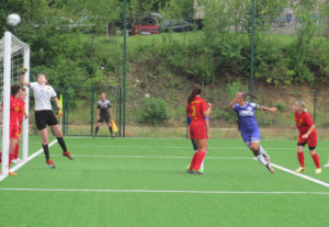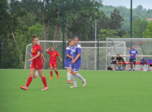 Мачът започна с гол „от съблекалните”. Още в първата атака Недрет Заструг с прехвърлящ удар матира вратарката на гостенките – 1:0. После съперникът изнесе играта напред, но в 17-ата минута Мирела Моева стреля отдясно за 2:0. Преди това удар на Лора Петрова бе спасен, а до почивката възможности имаше и пред Мирела Моева и Велизара Владимирова. Велизара е рожденичка днес и преди мача съотборничките я поздравиха с „Happy Birthday”.