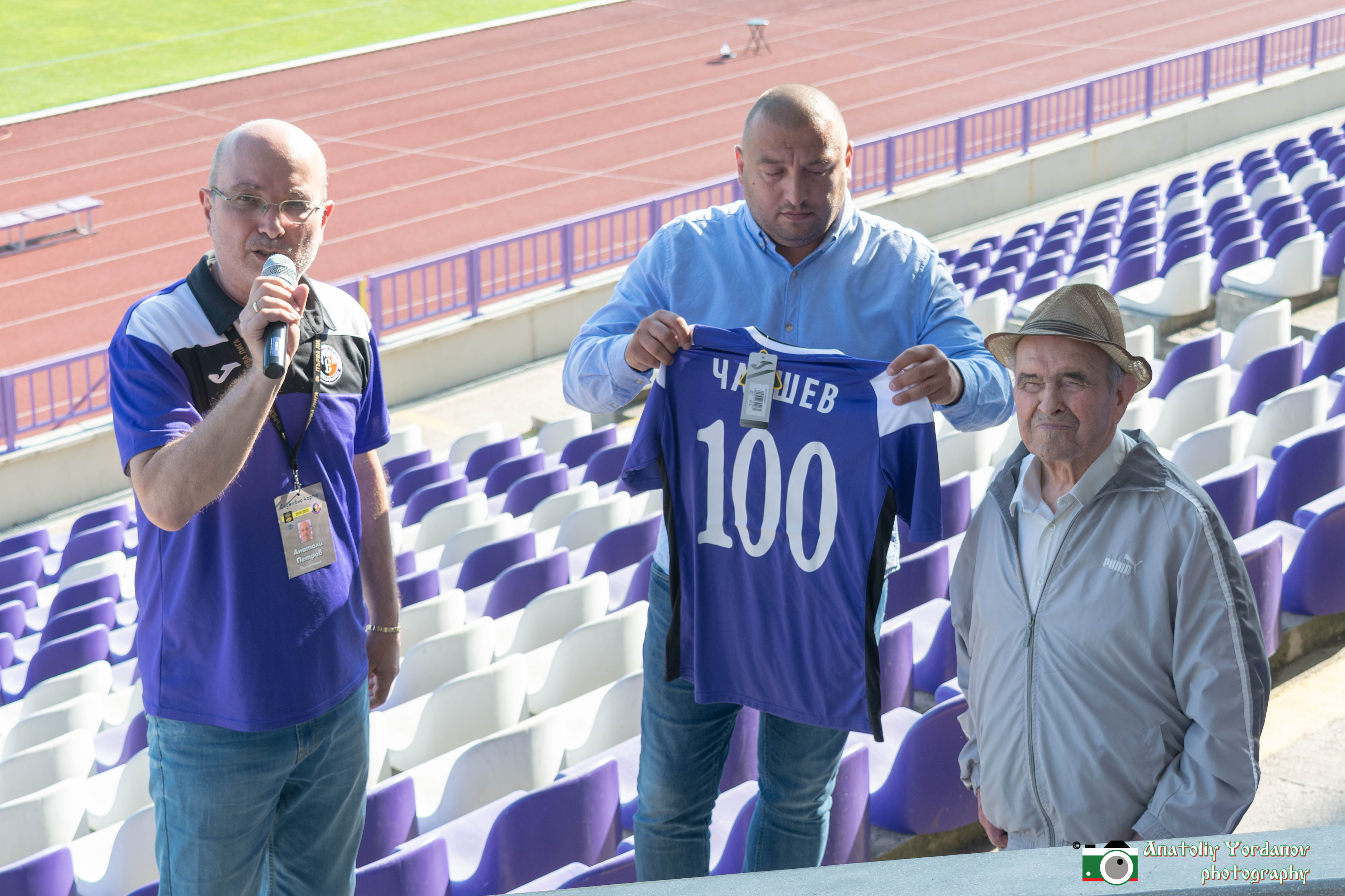 Столетникът Деян Чаушев получи от “Етър” фланелка с № 100