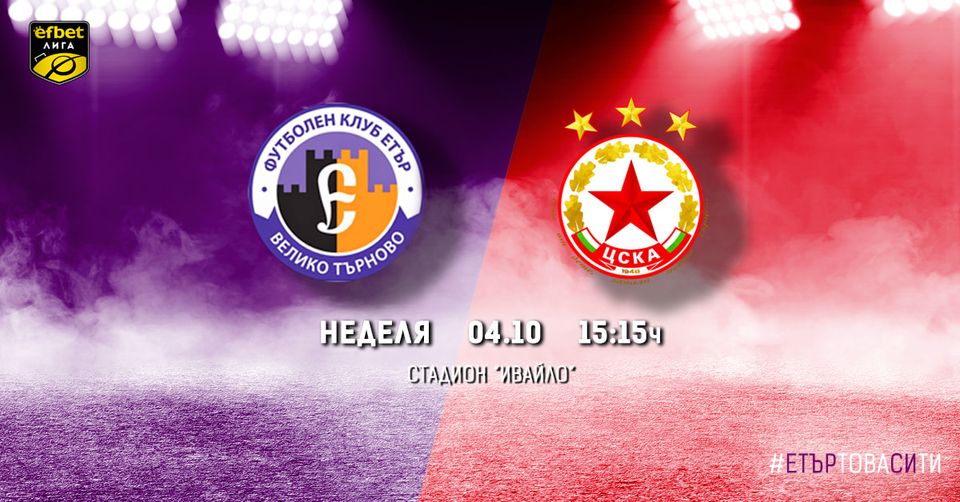 По 10 лева ще струват билетите за предстоящия мач “Етър” – ЦСКА-София. Те ще бъдат пуснати в продажба в четвъртък от 15:00 до 19:00 часа на касата от северната страна на стадион „Ивайло“ откъм Спортния диспансер. В петък и събота касата ще работи от 10:00 до 19:00 часа. На 4 октомври касата отваря отново в 10 часа. В същия час ще отворят и две каси от южната страна на спортното съоръжение.
