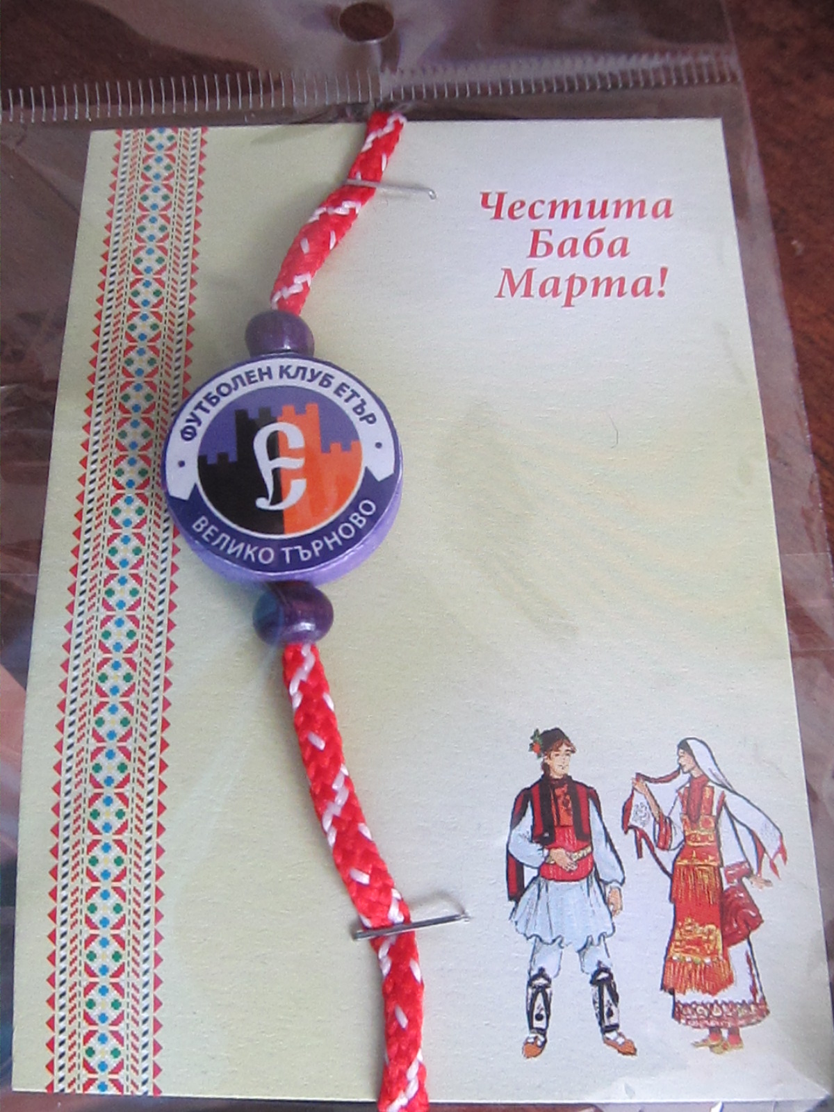 “Етър” предлага на привържениците си мартеници в навечерието на празника 1 март. Те са с емблемата на клуба, подходящи за чудесен подарък по повод празника. Цената им е 2 лв. и можете да ги намерите от днес в офиса на клуба на стадион “Ивайло”. Там все още можете да закупите и книгата “Те играха за “Етър” на цена от 12 лв.
