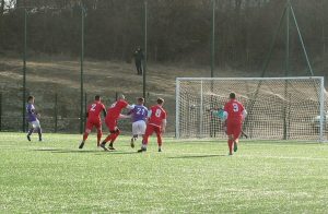 Първата по-чиста възможност беше за „виолетовите“, когато Даниел-Виктор Кънчев от фаул нацели сглобката на гредите. Малко след това обаче таранът на гостите Тихомир Кънев след центриране насочи с глава топката под сглобката – 0:1. До почивката падна още едно попадение – след грешка в защитата Беадир Беадиров удвои резултата.