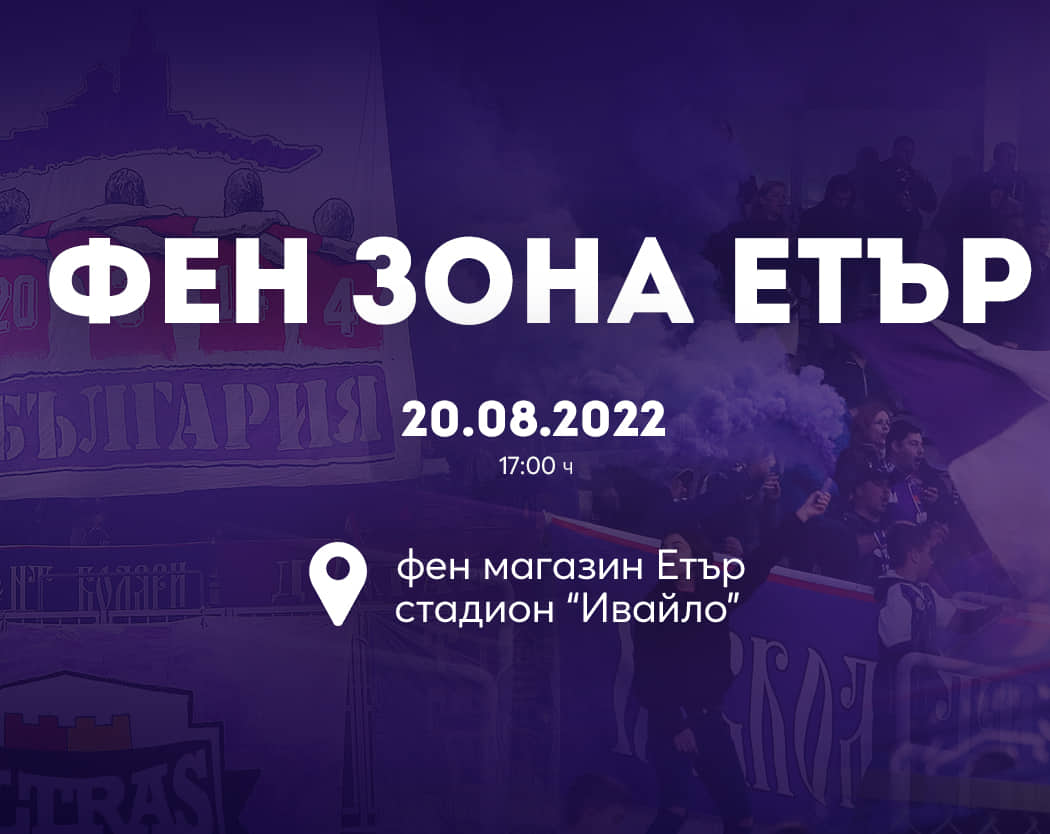 И днес феновете на “Етър” ще се радват отново на Фен зона преди и след мача на отбора срещу “Созопол”. Инициативата стартира в 17.00 часа и ще продължи и след срещата.