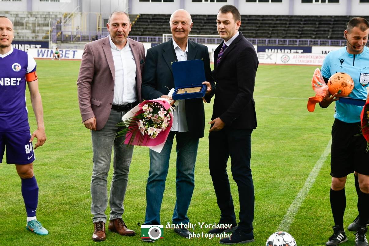 Преди мача почетен плакет от БФС получи съдийският наблюдател на двубоя Йордан Дурчев, който прекратява своята кариера. 20 години като футболен съдия и още 20 години като съдийски наблюдател навърши Йордан Дурчев, който бе поздравен на пистата и от цялото си семейство. Наградата му връчиха представителите на Съдийската комисия на БФС Георги Йорданов и Стоян Денев.
