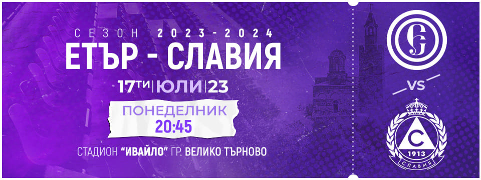 Началото на двубоя “Етър” – “Славия” е в 20:45 ч. Елате на стадиона по-рано, за да се избегнат натрупвания на касите и входовете.