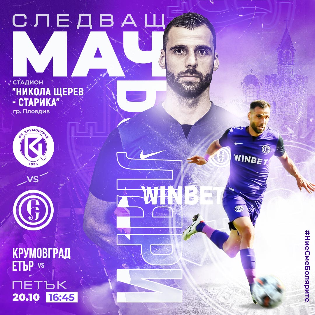 Гостуване на другия новак в елита „Крумовград“ предстои на „Етър“, мачът е в петък от 16:45 ч. в Пловдив. Предстоящия двубой пропускат Николай Янков, Валери Христов и Владислав Найденов, които са контузени.