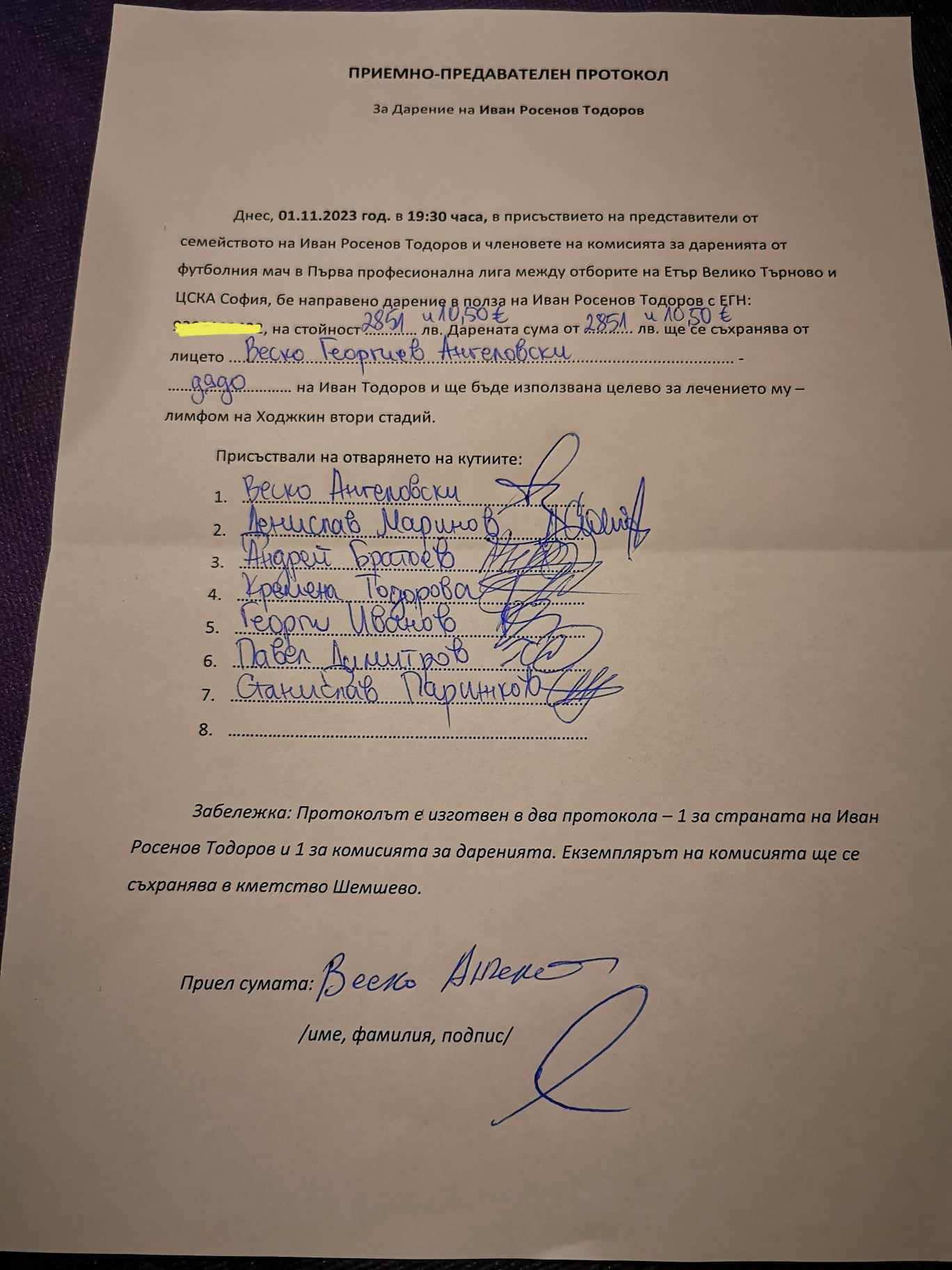 2872 лв. бяха събрани от феновете на благотворителната акция в помощ на 30-годишния Иван Тодоров по време на мача между „Етър“ и ЦСКА.