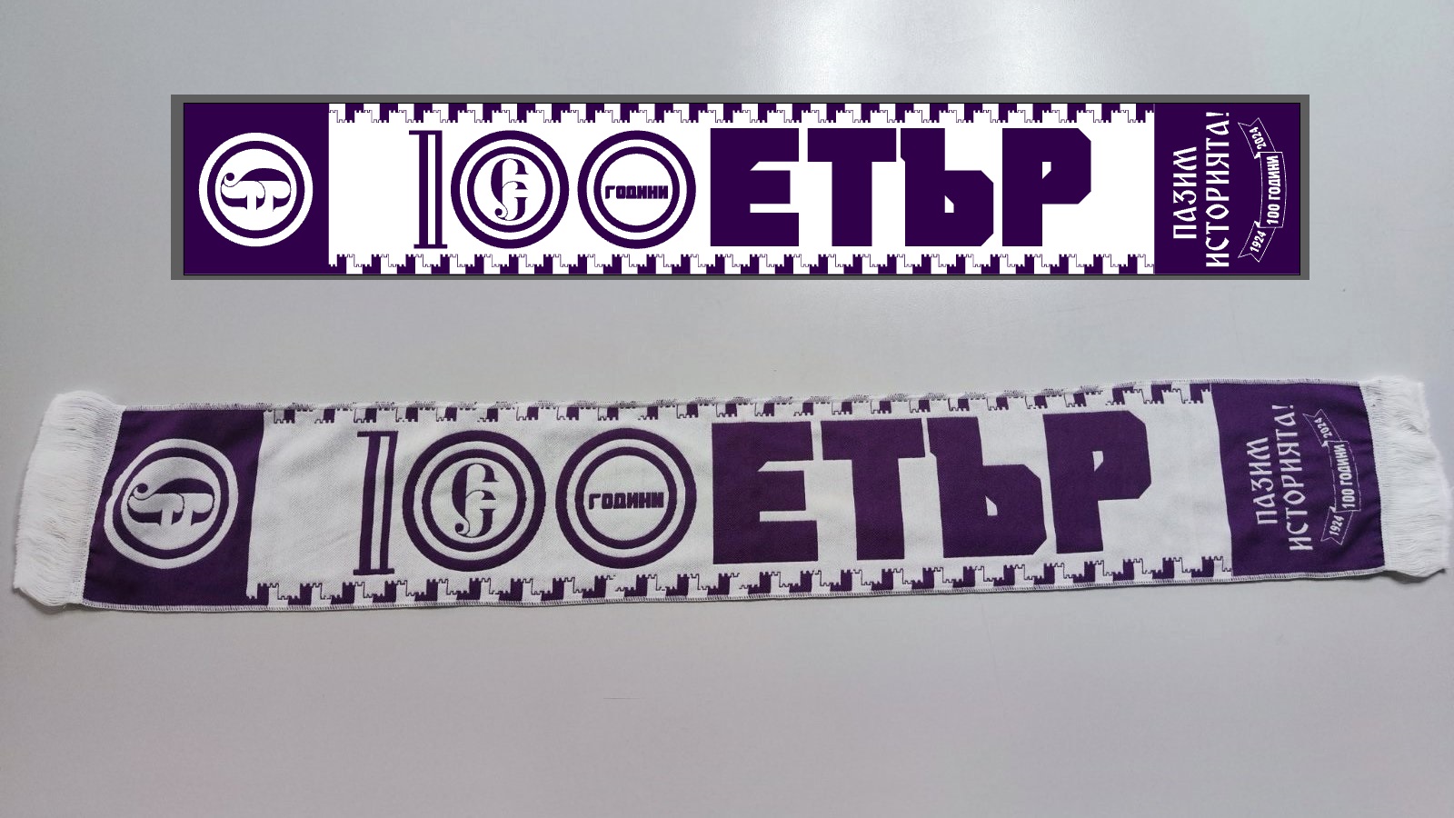С юбилейни шалове зарадва феновете си „Етър“. Плетените шалове са с оригиналната емблема на клуба, с надпис „Пазим историята“ и са по повод вековния юбилей. Те са чудесен подарък за Коледните и Новогодишните празници и вече са в продажба във фен магазина на клуба. Цената на артикулите е 30 лв.
