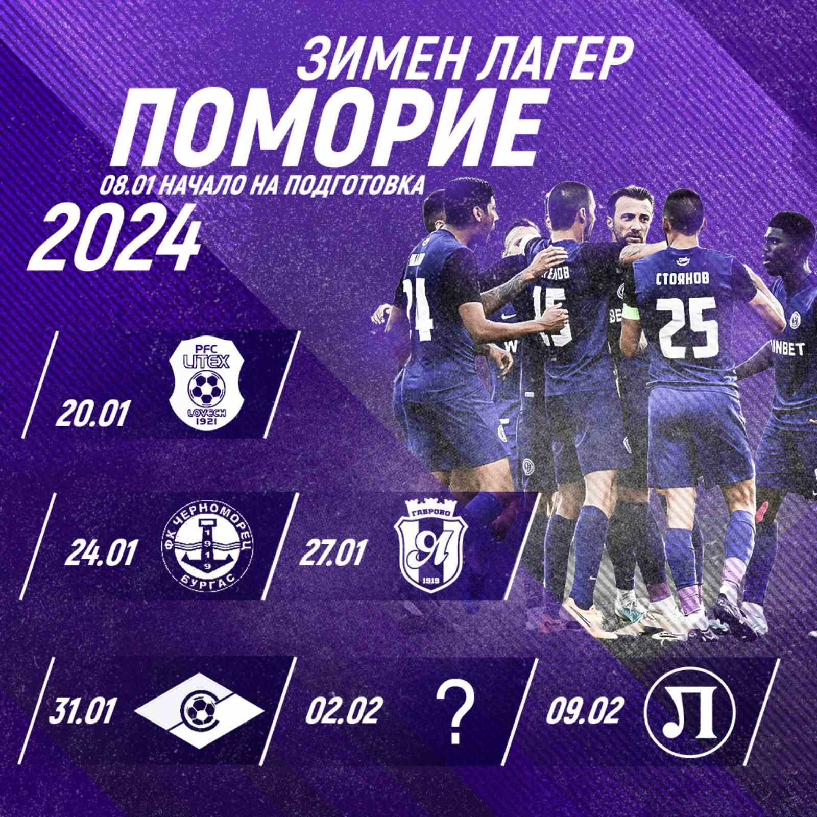 Вторият етап е лагер в Поморие, който ще бъде от 22 януари до 2 февруари. По време на лагера ще се изиграят 4 контролни срещи. На 24 януари „виолетовите“ гостуват на „Черноморец“ (Бургас). На 27 януари те ще срещнат „Янтра“ (Габрово), а на 31 януари – „Септември“ (София). Все още се търси съперник за проверката на 2 февруари.