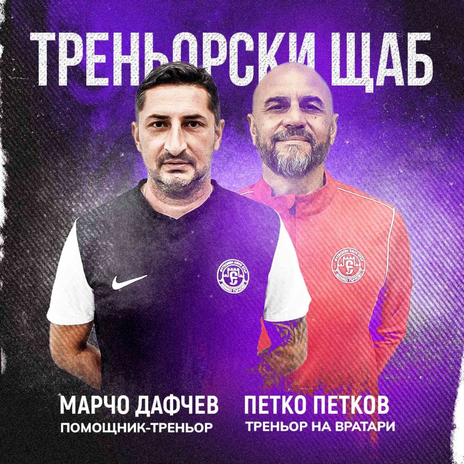 Марчо Дафчев и Петко Петков влизат в треньорския щаб на мястото на Калоян Чакъров и Марин Стефанов, като Марин Стефанов ще продължи работа в школата на „виолетовите“.