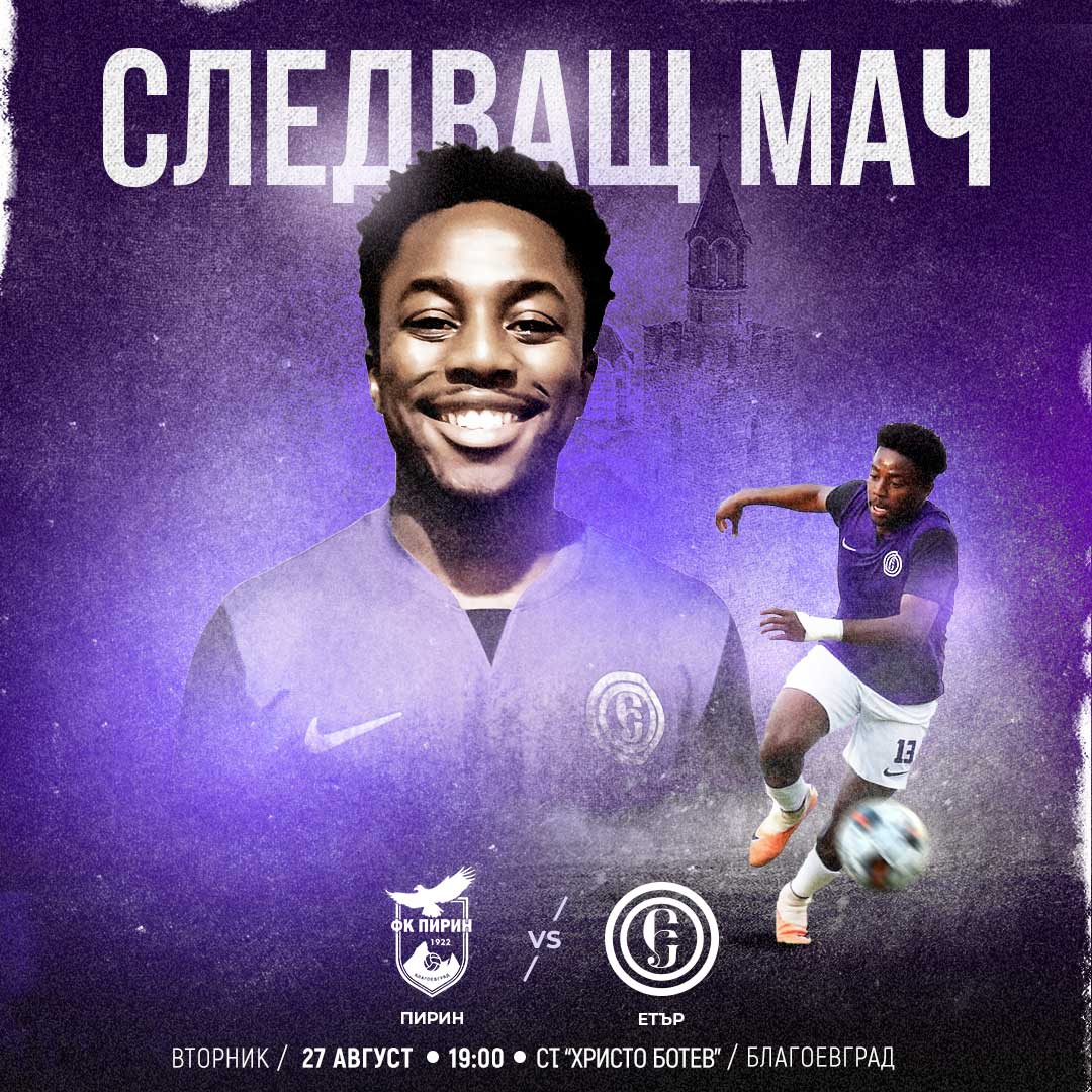 Етърци пътуват днес за Благоевград, където утре гостуват в дерби на местния “Пирин”. Мариян Гребенчарски от София ще ръководи двубоя, който е от 19:00 ч. и ще бъде предаван пряко по Диема спорт. Асистенти на Гребенчарски са Тодор Вуков и Марин Бонев, четвърти съдия е Мартин Марков, а съдийски наблюдател – Тони Пандарски.