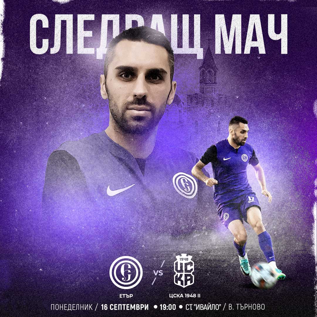 Билетите за мача “Етър” – ЦСКА 1948 II на 16 септември от 19:00 ч. на стадион “Ивайло” са вече в продажба! Осигурили сме различни локации в града, на които можете да се сдобиете с входни пропуски.