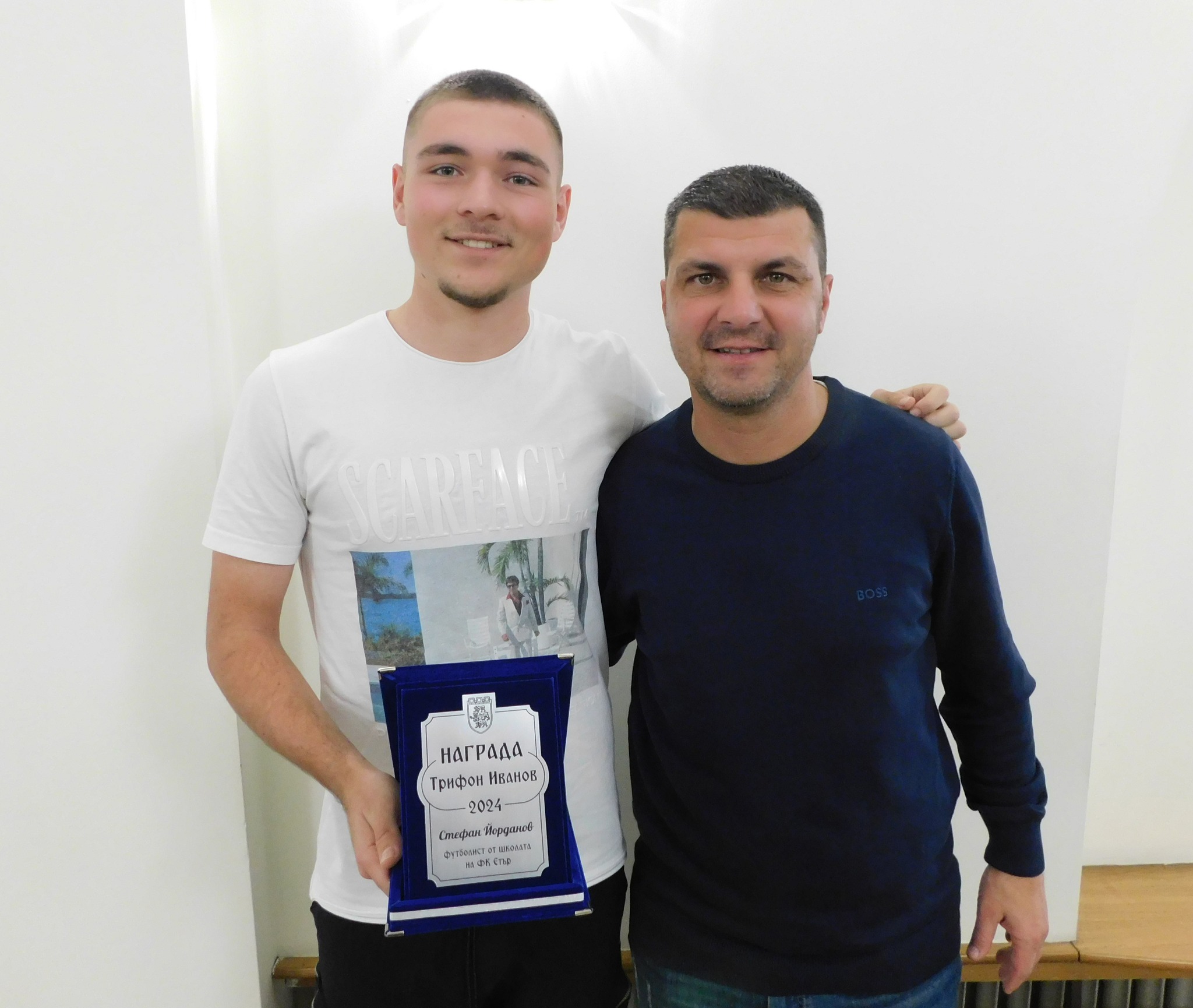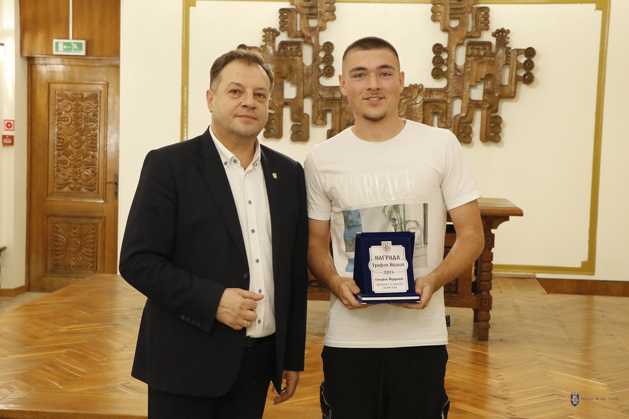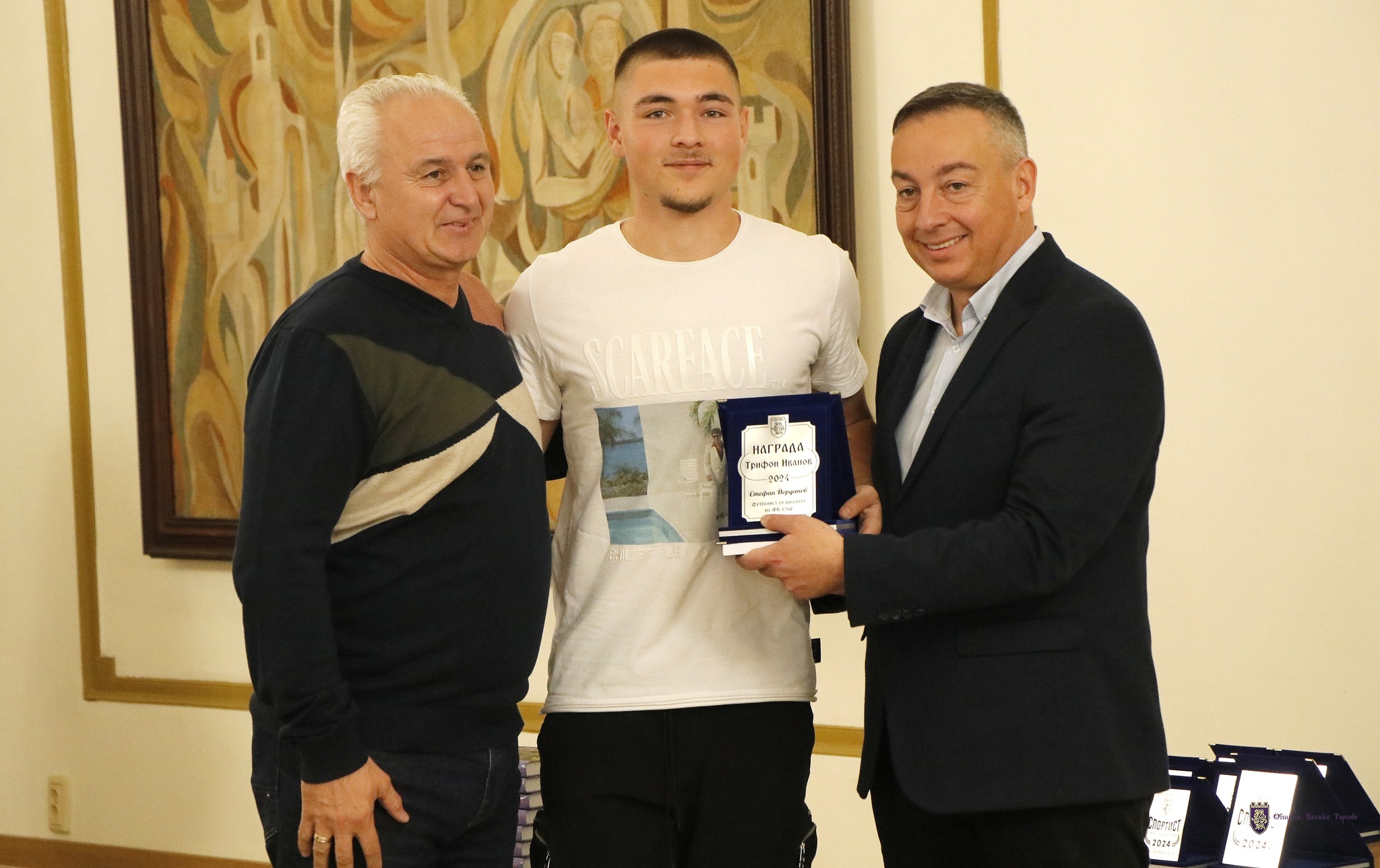 Стефан Йорданов получи наградата си по време на официалната церемония за обявяване на Спортист на годината 2024 в анкетата на Община Велико Търново, като призът му бе връчен от председателя на Великотърновския общински съвет Венцислав Спирдонов.