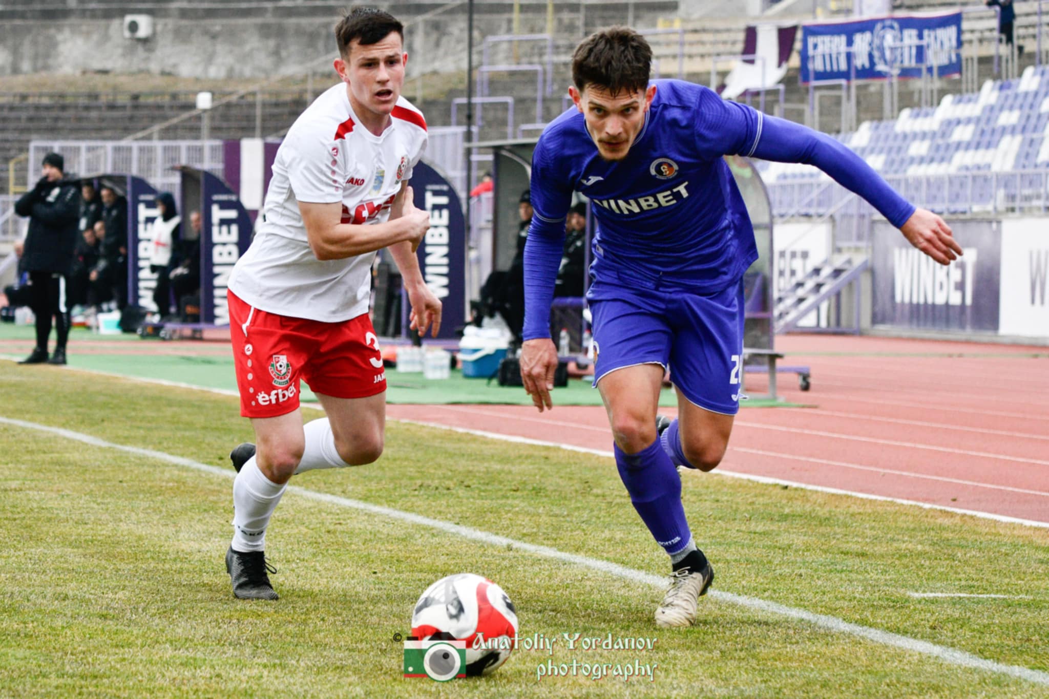В средата на полувремето Радослав Найденов центрира от корнер и Петър Караангелов можеше да накаже родния си тим, но ударът му от задна греда с глава бе избит от защитник от голлинията. В 27-ата минута Янков проби отляво и центрира, Клодан находчиво пропусна топката и връхлитащият Радослав Найденов разпъна мрежата – 2:0. Далечен удар на Димитър Илиев пък мина опасно до гредата.