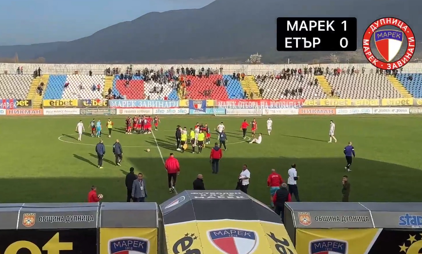 Реферът Мартин Марков даде 4-минутно добавено време, което вече бе изтекло, когато при последната атака на домакините отляво последва центриране и Николай Ганчев с глава донесе победния гол за дупничани.