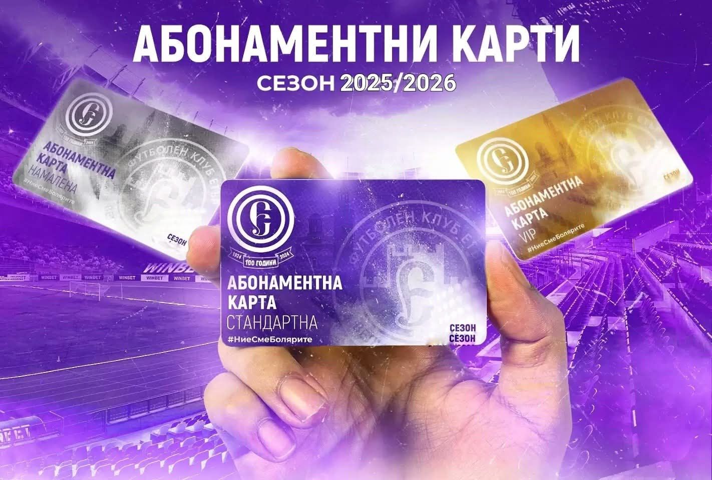 Припомняме, че все още можете да се снабдите с абонаментни карти, които ще се продават до първия домакински мач във вторник!