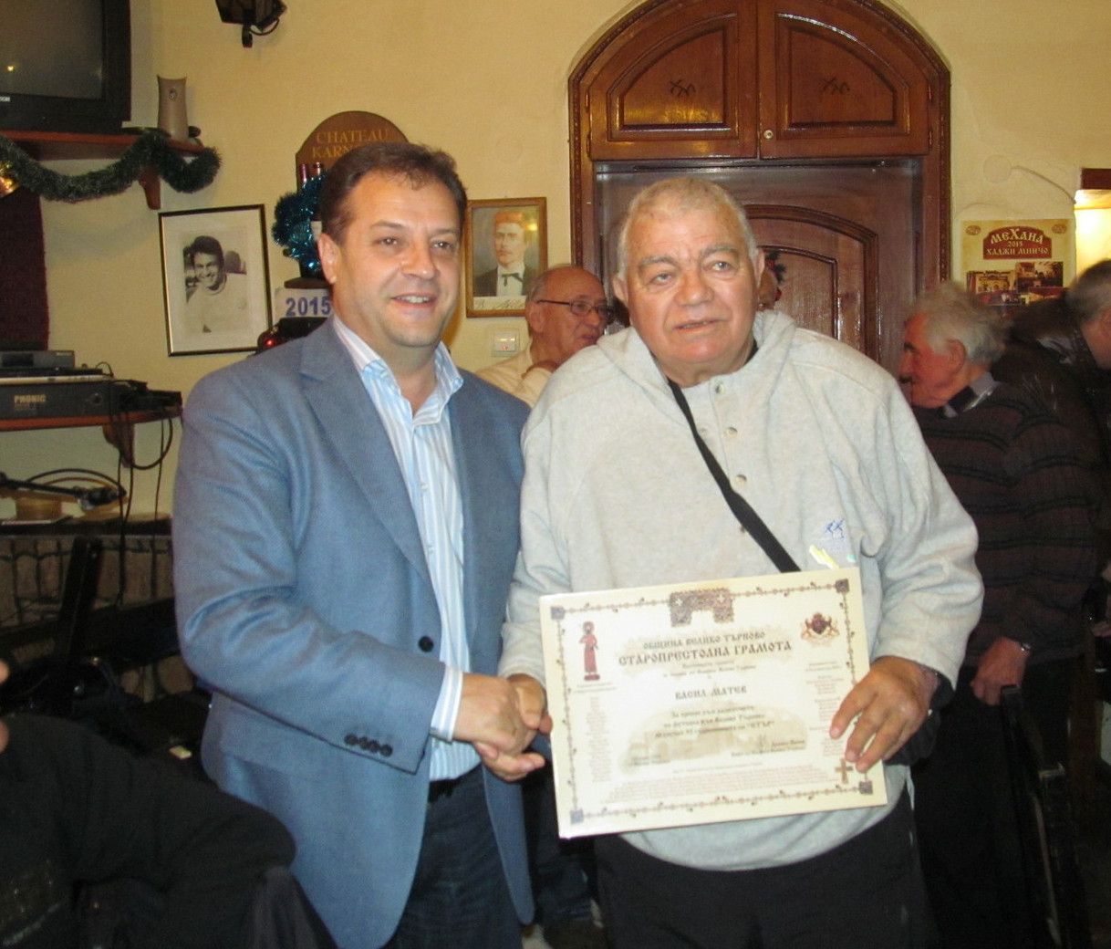 Преди няколко години той бе удостоен със Старопрестолна грамота за приноса си за развитието на футбола, връчена му от кмета на старата столица Даниел Панов, а м.г. във връзка със стотния юбилей на „Етър“ бе удостоен със Златна значка на БФС.