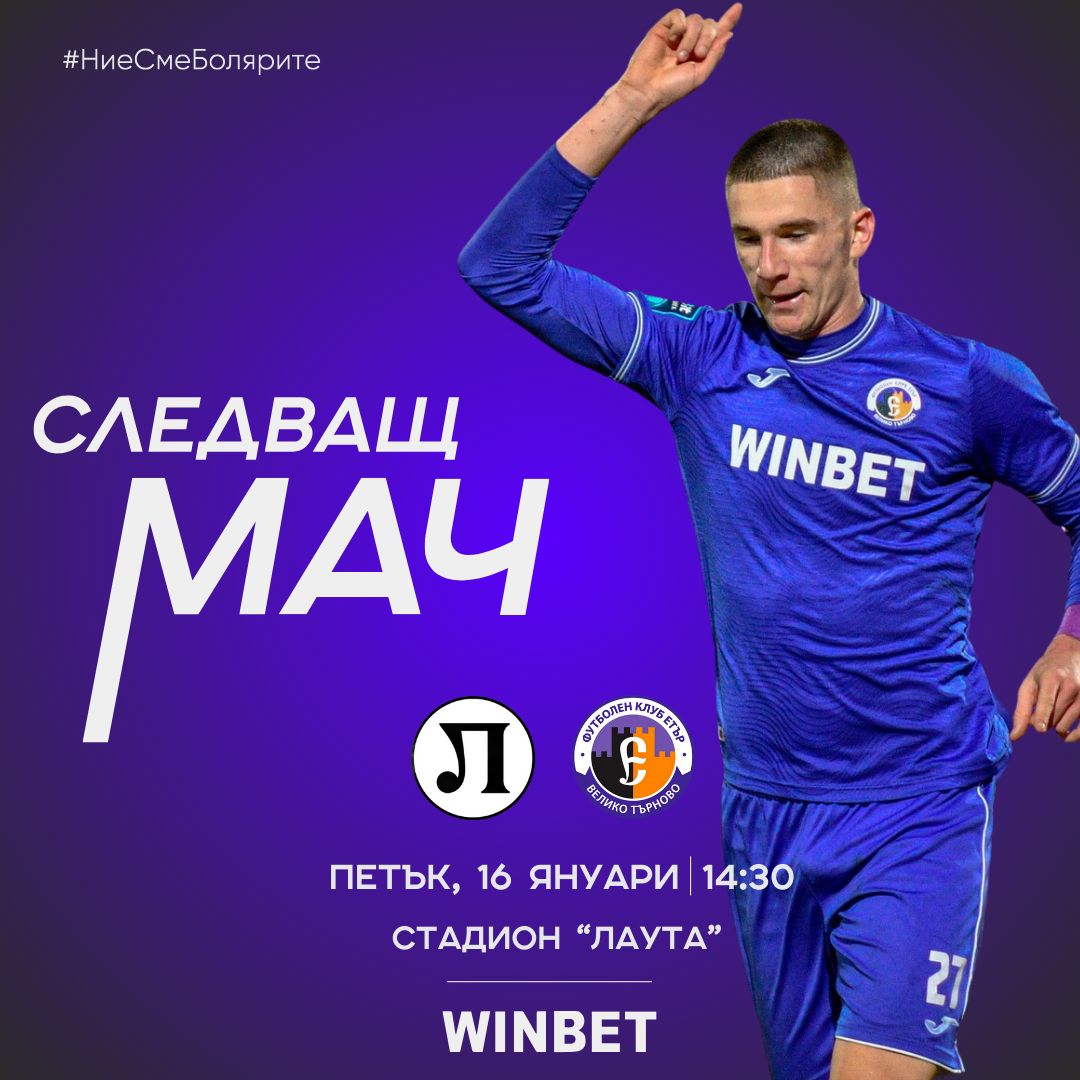На 31 януари (събота) „Етър“ ще гостува на елитния „Черно море“ във Варна. Генералната репетиция преди подновяването на първенството ще бъде между 6 и 8 февруари на стадион „Ивайло“ срещу „Спартак“ (Плевен).