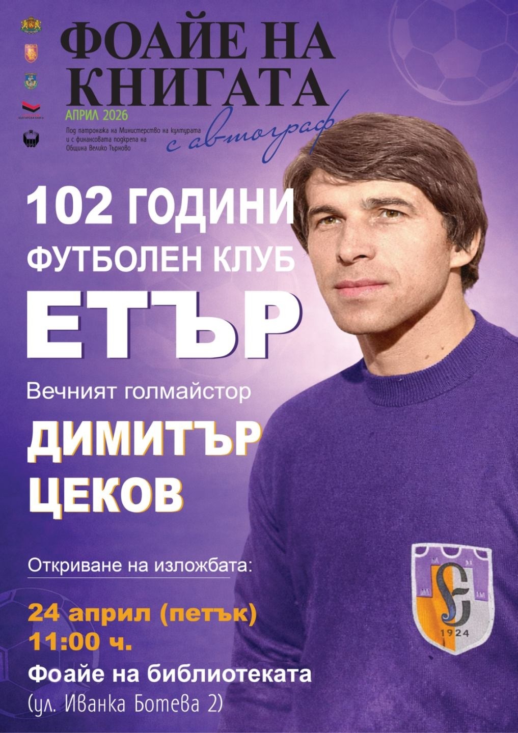 Уникални вещи от архива му ще бъдат показани за първи път. „102 г. ФК „Етър“. Вечният голмайстор Димитър Цеков“ се нарича изложбата, която ще бъде открита в РНБ „Петко Р. Славейков“ на 24 април.