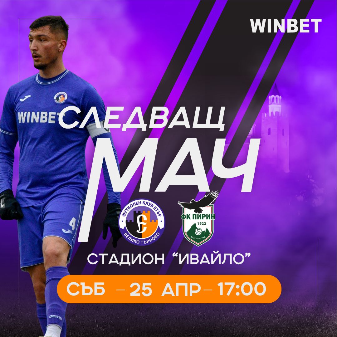 За първи път тази пролет „виолетовите“ ще бъдат в изцяло пълен състав за предстоящия мач от Втола лига. Етърци приемат „Пирин“ (Благоевград) на 25 април (събота) от 17:00 ч. на стадион „Ивайло“.
