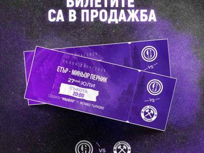 Билетите за мача “Етър” – “Миньор” на 27 юли от 20:00 ч. на стадион “Ивайло” са вече в продажба! Осигурени са различни... Виж повече